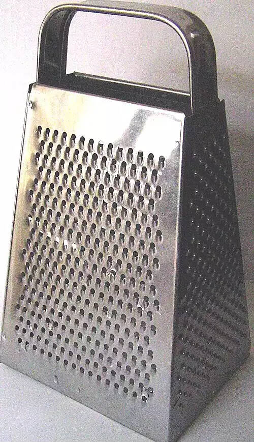 ۲. وسیله ای با سوراخ های لبه دار تیز از جنس فلز یا پلاستیک که برای ریزریز کردن برخی موادغذایی از آن استفاده می شود.