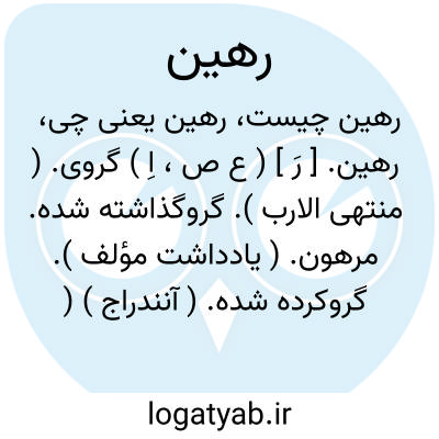 معنی رَهِینَةٌ: گِرو - در گِرو (رهن و رهین و مرهون آن چیزی است که به عنوان وثیقه و گرو به کسی میدهی و از او چیزی قرض میکنی و چون هر جا این کلمه به چشم بخورد تصوری از معنای حبس و نگهداری به ذهن میرسد، لذا این کلمه را در حبس هر چیزی نیز استعمال کردند، هر چند که ربطی...