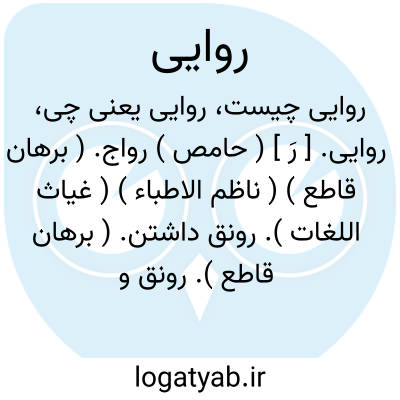 روایی. [ رَ ] ( حامص ) رواج. ( برهان قاطع ) ( ناظم الاطباء ) ( غیاث اللغات ). رونق داشتن. ( برهان قاطع ). رونق و خوبی داد و ستد و خرید و فروخت. رواج بازار. ضد کسادی. ( ناظم الاطباء ). گرمی و تیزی بازار: