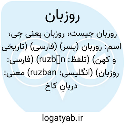 اسم: روزبان (پسر) (فارسی) (تاریخی و کهن) (تلفظ: ruzbān) (فارسی: روزبان) (انگلیسی: ruzban)
