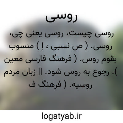 ( صفت ) ۱ - منسوب به قوم روس. ۲ - زبان مردم روسیه. ۳ - نوعی پارچه منسوب به روس. ۴ - نوعی پیاله شراب.