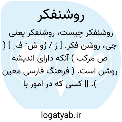 روشن فکر. [ رَ / رُو ش َ ف ِ ] ( ص مرکب ) آنکه دارای اندیشه روشن است. ( فرهنگ فارسی معین ). || کسی که در امور با نظر باز و متجددانه نگرد. ( فرهنگ فارسی معین ). نوگرای. تجددپرست. تجددگرای. آنکه اعتقاد به رواج آیین و افکار نو و منسوخ شدن آیین کهن دارد.