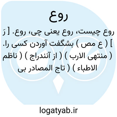 روع. [ رَ وَ ] ( ع ص ) شگفت انگیز. ( از ناظم الاطباء ) ( منتهی الارب )( آنندراج ) اسم است از اَروَع آنکه ترا به حسن و روشنی منظر یا شجاعت بشگفتی آورد. ( از اقرب الموارد ).
