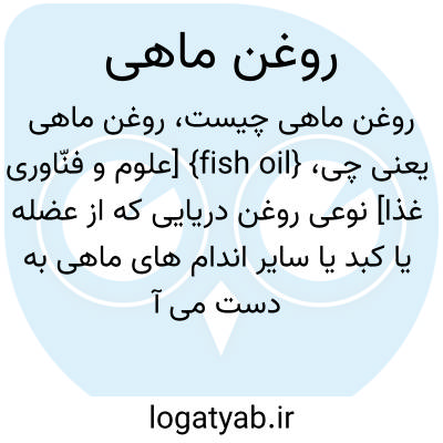 {fish oil} [علوم و فنّاوری غذا] نوعی روغن دریایی که از عضله یا کبد یا سایر اندام های ماهی به دست می آید و حاوی اسیدهای چرب با چند پیوند دوگانه است و برای تولید مارگارین و روغن های آشپزی از آن استفاده می کنند