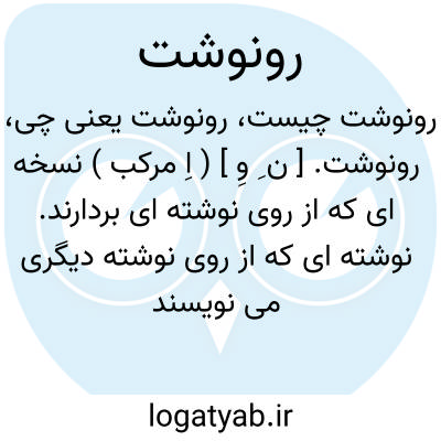 رونوشت. [ ن ِ وِ ] ( اِ مرکب ) نسخه ای که از روی نوشته ای بردارند. نوشته ای که از روی نوشته دیگری می نویسند. ( لغات فرهنگستان ). نسخه. سواد. کپیه. ( یادداشت مؤلف ).