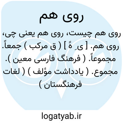 روی هم. [ ی ِ هََ ] ( ق مرکب ) جمعاً. مجموعاً. ( فرهنگ فارسی معین ). مجموع. ( یادداشت مؤلف ) ( لغات فرهنگستان ). || چیزی بالای چیز دیگری. ( فرهنگ فارسی معین ).