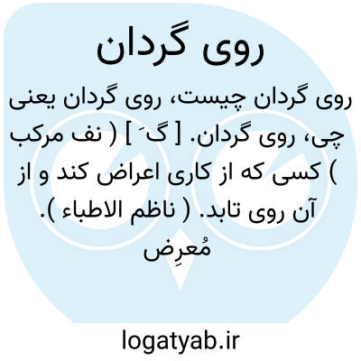 روی گردان. [ گ َ ] ( نف مرکب ) کسی که از کاری اعراض کند و از آن روی تابد. ( ناظم الاطباء ). مُعرِض. ( یادداشت مؤلف ). متماری. ( منتهی الارب ). اعراض کننده و بی دماغ. ( آنندراج ).