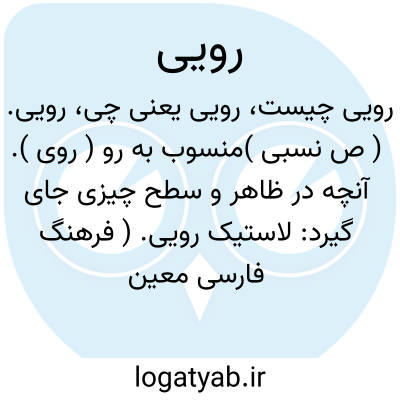 ( صفت ) منسوب به رو ( روی ) آنچه در ظاهر و سطح چیزی جای گیرد لاستیک رویی.