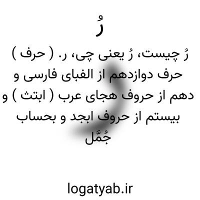 ر. ( حرف ) حرف دوازدهم از الفبای فارسی و دهم از حروف هجای عرب ( ابتث ) و بیستم از حروف ابجد و بحساب جُمَّل آن را به دویست دارند و از حروف مکسوره و زلاقه و مسروری و منفصله یا خواتیم و آنیه و مهمله ( غیر منقوطه ) و نورانیه یا حروف حق و متشابهه یامتزاوجه و لثوی و از حروف یرملون میباشد و در علم نجوم و احکام نشانه قمر ورمز است از ربیعالاَّخر و ارجع الی... و در فارسی با کاف ( رک ) علامت «رجوع کنید...» و در علم جفر جزء هفت حرف خاکی. رجوع شود به برهان قاطع چ معین. و از حروف مجهوره و شمسیه و ذولقیه میباشد. نام آن را «رِ» و «را» و «راء» گویند و نیز «رای قرشت و «رای » و «ری » نیز گفته اند و در کتابت » آن را مانند زاء نویسند لیکن بدون نقطه ( رک لغت نامه حرف ز ) این حرف در السنه سامی ( عربی، عبرانی، سریانی، آرامی ) هست و در زبانهای قدیم ایران از قبیل پهلوی و اوستائی و همچنین در سانسکریت نیز هست. ( فرهنگ نظام ). || در علم تجوید گویند راء را هشت صفت است: جهر، بین الشدة و الرخاوه، انفتاح، استفال، انحراف، تکریر، زلق، سکون؛ و در قرائت زبان عربی در چهار موضع به ترقیق و شش موضع به تفخیم ادا شود. ( تجویدالقرآن تألیف محمدبن علی بن محمد الحسینی در مقدمه قرآن چ علی اکبر علمی ص 4 ). و بجهت آنکه شعرای عرب بقافیه راء بسیار شعر سروده اند گویند: «الراء حمارالشعراء لکثرته » و عجب که در فارسی نیز چنین است.