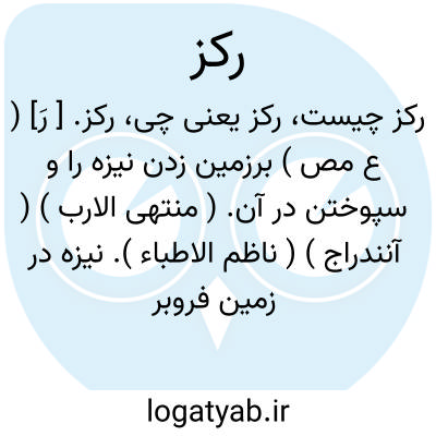 رکز. [ رَ] ( ع مص ) برزمین زدن نیزه را و سپوختن در آن. ( منتهی الارب ) ( آنندراج ) ( ناظم الاطباء ). نیزه در زمین فروبردن. ( دهار ). نیزه فروبردن. ( تاج المصادر بیهقی ) ( ازاقرب الموارد ). || برجستن رگ و پریدن آن.( منتهی الارب ) ( آنندراج ). اختلاج؛ پریدن رگ. ( ناظم الاطباء ). || ثابت کردن. بپای کردن. ( فرهنگ فارسی معین ) ( از اقرب الموارد ). || صاحب رکاز شدن. ( ناظم الاطباء ).