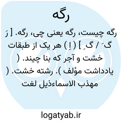رگه. [ رَ گ َ ] ( اِخ ) رجوع به «رَگ َ» و «ری » شود.