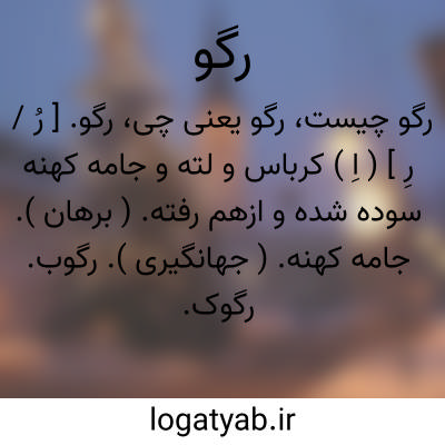 دُر شبه، دیبا رگو، اکسون کسا، اطلس گلیم.سوزنی.گفت این چنین نمازی نماز نبود و این نماز را فردا در عرصات چون رگوئی پلید به رویت باززنند. ( تذکرة الاولیاء عطار ). و رگوئی نبود که [ رابعه را ] در او پیچد. ( تذکرة الاولیاء ).