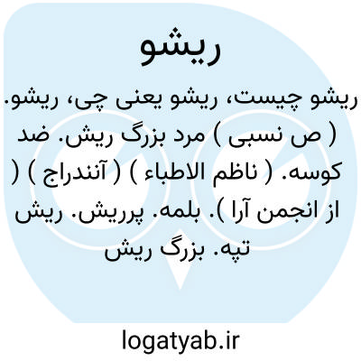 ریشو. ( ص نسبی ) مرد بزرگ ریش. ضد کوسه. ( ناظم الاطباء ) ( آنندراج ) ( از انجمن آرا ). بلمه. پرریش. ریش تپه. بزرگ ریش. لحیانی. آنکه ریش بزرگ و انبوه دارد. مقابل کوسه. ( یادداشت مؤلف ):