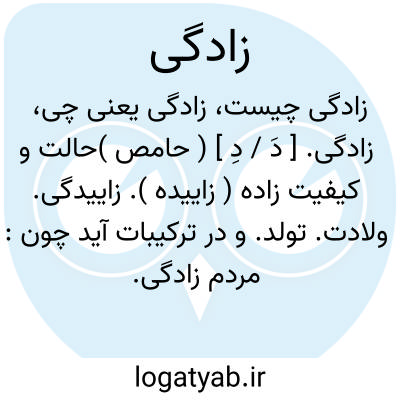 زادگی. [ دَ / دِ ] ( حامص )حالت و کیفیت زاده ( زاییده ). زاییدگی. ولادت. تولد. و در ترکیبات آید چون: مردم زادگی. کیان زادگی. آقازادگی، حرام زادگی. حلال زادگی. رجوع به این ترکیبات و زادو زادن شود. || مخفف آزادگی: