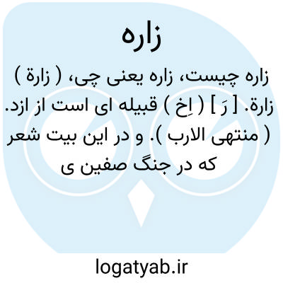 ( زارة ) زارة. [ رَ ] ( اِخ ) قبیله ای است از ازد. ( منتهی الارب ). و در این بیت شعر که در جنگ صفین یکی ازلشکریان معاویه انشا کرد از آن نام برده شده است: