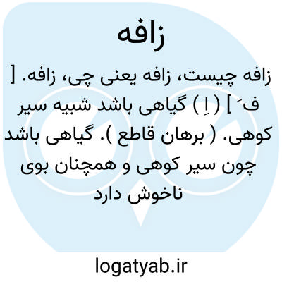 زافه. [ ف َ ] ( اِ ) گیاهی باشد شبیه سیر کوهی. ( برهان قاطع ). گیاهی باشد چون سیر کوهی و همچنان بوی ناخوش دارد. ( صحاح الفرس ) ( فرهنگ سروری ):