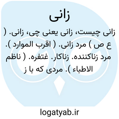 زانی. ( ع ص ) مرد زانی. ( اقرب الموارد ). مرد زناکننده. زناکار. غتفره. ( ناظم الاطباء ). مردی که با زنی بدون نکاح جماع کند که نام آن زنا است. ( فرهنگ نظام ). و رجوع به زان و زناة و زناشود. || مجازاً روزگار. دهر:
