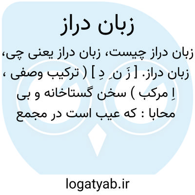 زبان دراز. [ زَ دِ ] ( ص مرکب )جسور و بی ادب در تکلم. ( فرهنگ نظام ). آنکه سخن بی محابا گوید و بسیار گوید. ( آنندراج ). بدزبان و کسی که به بدی حرف بسیار میزند و گستاخ. ( ناظم الاطباء ). ذِربَة. سلیط. عَذقانَة. مِطریر. مَشان. ( منتهی الارب ): دریغ اگر این بنده با حسن شمایلی که دارد زبان دراز و بی ادب نبودی. ( گلستان ). رجوع به زبان درازی و زبان درازی کردن شود. || پرگو. پرحرف. طویل الکلام. || مجازاً، تیغ. ( آنندراج ).
