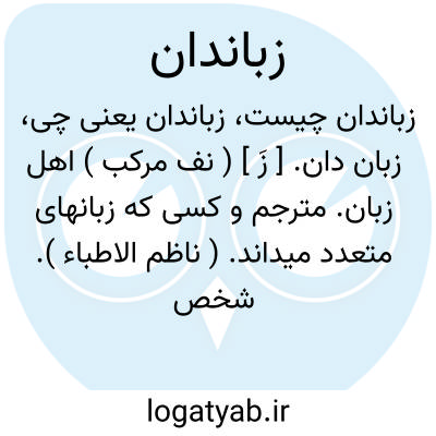 زبان دان. [ زَ ] ( نف مرکب ) اهل زبان. مترجم و کسی که زبانهای متعدد میداند. ( ناظم الاطباء ). شخصی را گویند که همه زبانها را بداند. ( برهان قاطع ). آنکه همه زبانها را داند و بیان و ترجمه تواند. ( انجمن آرای ناصری ). آنکه زبانها را بداند و بیان و ترجمه بداند و تواند. ( آنندراج ):