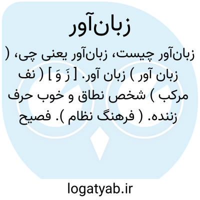 ( زبان آور ) زبان آور. [ زَ وَ ] ( نف مرکب ) شخص نطاق و خوب حرف زننده. ( فرهنگ نظام ). فصیح و بلیغ. ( ناظم الاطباء ). کنایه از فصیح. ( آنندراج ) ( بهارعجم ):