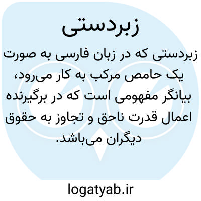 زبردستی که در زبان فارسی به صورت یک حامص مرکب به کار می‌رود، بیانگر مفهومی است که در برگیرنده اعمال قدرت ناحق و تجاوز به حقوق دیگران می‌باشد. این واژه در ادبیات فارسی و متون رسمی به عنوان اصطلاحی شناخته شده برای توصیف رفتارهای خشن و غیرقانونی مورد استفاده قرار می‌گیرد. دامنه معنایی این کلمه حوزه‌های مختلف اجتماعی، فرهنگی و حقوقی را در بر می‌گیرد.