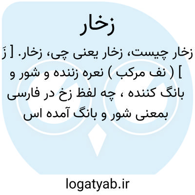 زخار. [ زَ ] ( نف مرکب ) نعره زننده و شور و بانگ کننده، چه لفظ زخ در فارسی بمعنی شور و بانگ آمده است پس در این صورت زخار کلمه ای است مرکب از لفظ زخ و کلمه «َار». ( از غیاث اللغات از مؤید الفضلاء ) ( آنندراج ).