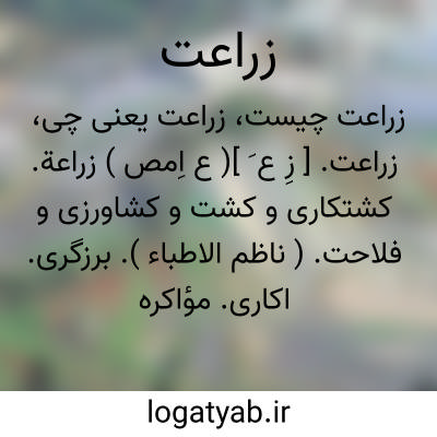 زراعة. [ زِ ع َ ] ( ع اِ ) حرفه و شغل کشتکاری. ( ناظم الاطباء ) ( از اقرب الموارد ).