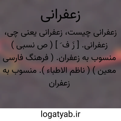 زعفرانی. [ زَ ف َ ] ( ص نسبی ) منسوب به زعفران. ( فرهنگ فارسی معین ) ( ناظم الاطباء ). منسوب به زعفران. فروشنده زعفران. دکان زعفران فروش. ( یادداشت به خط مرحوم دهخدا ). منسوب به زعفران که زعفران فروش را افاده می کند. ( از انساب سمعانی ). || به رنگ زعفران. زعفری. ( فرهنگ فارسی معین ). رنگ زرد شبیه به رنگ زعفران. ( ناظم الاطباء ) رنگ شده به زعفران. به رنگ زعفران. زعفری. مزعفر. ( یادداشت بخط مرحوم دهخدا ):