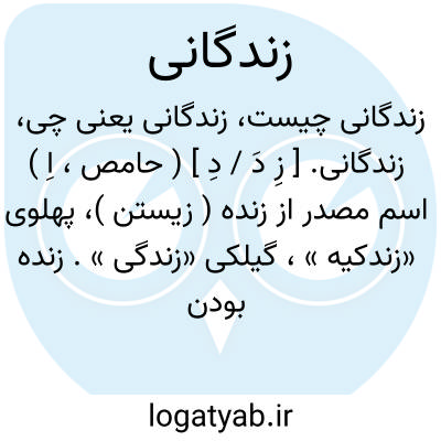 زندگانی. [ زِ دَ / دِ ] ( حامص، اِ ) اسم مصدر از زنده ( زیستن )، پهلوی «زندکیه »، گیلکی «زندگی ». زنده بودن.حیات. ( حاشیه برهان چ معین ). معروف. ( آنندراج ). حیات. ( ناظم الاطباء ). زنده بودن. زیستن. حیات. ( فرهنگ فارسی معین ). زیست. حیات. ( یادداشت بخط مرحوم دهخدا ): و طعام ایشان ماهی باشد و بدان زندگانی گذرانند. ( حدود العالم، یادداشت بخط مرحوم دهخدا ).