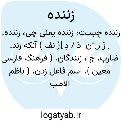 ۱ - آنکه زند ضارب جمع زنندگان. ۲ - بد زشت نامطبوع نفرت انگیز تنفر آور: چین لبهایش که دال بر قساوت و بیرحمی بود زننده تر شد. ۳ - نوازنده ساز مطرب: [[ ابر زیر و بم شعرا عشی قیس زننده همی زد بمضرابها ( عنابها ) ]] ( منوچهری ). یا سخن زننده سخن درشت ناسزا دشنام.