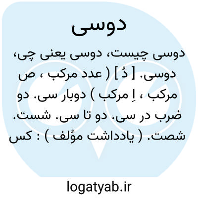 دوسی. [ دُ ] ( عدد مرکب، ص مرکب، اِ مرکب ) دوبار سی. دو ضرب در سی. دو تا سی. شست. شصت. ( یادداشت مؤلف ):