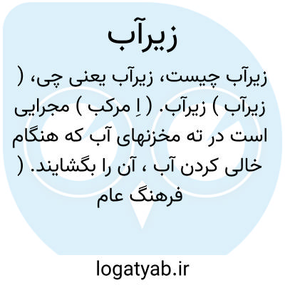 ( زیرآب ) زیرآب. ( اِ مرکب ) مجرایی است در ته مخزنهای آب که هنگام خالی کردن آب، آن را بگشایند. ( فرهنگ عامیانه جمال زاده ). مخرجی دربسته در تک خزانه یاحوض یا آب انبار و غیره که به چاهی یا مغاکی منتهی میشود تا آنگاه که خواهند، آن را باز کنند و آبدان ازآب و لجن تهی شود. ( از یادداشت بخط مرحوم دهخدا ).