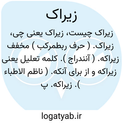 زیراک. ( حرف ربطمرکب ) مخفف زیراکه. ( آنندراج ). کلمه تعلیل یعنی زیراکه و از برای آنکه. ( ناظم الاطباء ). زیراکه. پهلوی «ازیراک ». زیرا. ( فرهنگ فارسی معین ). زیراکه. از این راه که. بدین دلیل که. بدین سبب که. بدین جهت که. بدین علت که. ( یادداشت بخط مرحوم دهخدا ):