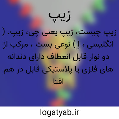 زیپ. ( انگلیسی، اِ ) نوعی بست، مرکب از دو نوار قابل انعطاف دارای دندانه های فلزی یا پلاستیکی قابل در هم افتادن که بوسیله لغزاندن گیره کشویی در امتداد آنها میتوان آنرا باز یا بسته کرد. با لغزاندن گیره در یک جهت، نری و مادگی دندانه ها منظماً در هم می افتند و قفل می شوند وبا لغزاندن گیره در جهت مخالف دندانه ها از هم جدا وزیپ باز میشود... امروزه زیپ در لباس و انواع چمدانها و کیف ها و محفظه های چرمی و پلاستیکی بکار می رود و تا حد فراوانی جانشین تکمه و بعضی از انواع بستها و قفلها و سگکها شده است. ( از دایرة المعارف فارسی ).