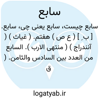 سابع. [ ب ِ ] ( ع ص ) هفتم. ( غیاث ) ( آنندراج ) ( منتهی الارب ). السابع من العدد بین السادس والثامن. ( قطر المحیط ) ( اقرب الموارد ). ج، سَبَعَه و سابعون. || هفت تو کننده. هفت لا کننده. سبع الحبل؛ حبله علی سبع قوی فهو سابع. ( اقرب الموارد ).