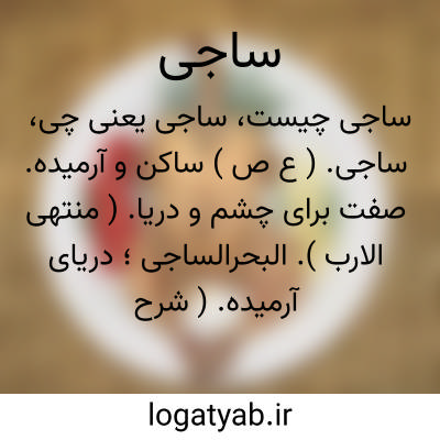 ساجی. ( ع ص ) ساکن و آرمیده. صفت برای چشم و دریا. ( منتهی الارب ). البحرالساجی؛ دریای آرمیده. ( شرح قاموس ). الطرف الساجی؛ چشم آرمیده. ( شرح قاموس ). || لیل ساج؛ شب نیک تاریک که پنهان میکند اشیاء را. ( منتهی الارب ). شب آرام و تاریک. ( تاج العروس ).