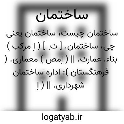 ساختمان. [ ت ِ ] ( اِ مرکب ) بناء. عمارت. || ( اِمص ) معماری. ( فرهنگستان ): اداره ساختمان شهرداری. || ( اِ مرکب ) نهاد. وضع. ساخت. ترتیب. ترکیب. خلقت. طرزساخت. طرز خلقت. شکل: ساختمان داخلی بدن. ساختمان خارجی بدن.