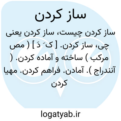 ( مصدر ) ۱ - ساخته کردن آماده کردن. ۲ - دادن زاد و توشه و اسباب سفر. ۳ - غذا دادن. ۴ - سازواری کردن سازگار بودن. ۵ - بزم نهادن: آراستن بزم. ۶ - آهنگ کردن عزم کردن. ۷ - آغاز کردن آغازیدن. ۸ - کوک کردن ( آلت موسیقی ساعت ). ۹ - پیش گرفتن اجرا کردن. ۱٠ - کشیدن ( صورت ) ترسیم.