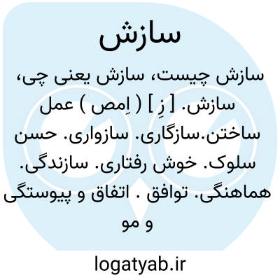 سازش. [ زِ ] ( اِمص ) عمل ساختن.سازگاری. سازواری. حسن سلوک. خوش رفتاری. سازندگی. هماهنگی. توافق. اتفاق و پیوستگی و مواصلت. ( ناظم الاطباء ). || تساهل. || آشتی. صلح ( در اصطلاح وزارت خارجه ). ( فرهنگستان ). تعهد و معاهده. || اتفاق از روی مکر و حیله. ( ناظم الاطباء ). || ایجاد و اختراع و احداث. ( ناظم الاطباء ) ( اشتینگاس ). || ساخت و شکل. ( ناظم الاطباء ). || سازش حاصل گردیدن؛ حصول توافق بین دو طرف. حصول صلح و آشتی. رجوع به ساختن شود.