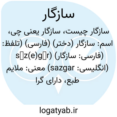 اسم: سازگار (دختر) (فارسی) (تلفظ: sāz(e)gār) (فارسی: سازگار) (انگلیسی: sazgar)