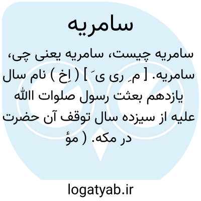 سامریه. [ م ِ ری ی َ ] ( اِخ ) نام سال یازدهم بعثت رسول صلوات اﷲ علیه از سیزده سال توقف آن حضرت در مکه. ( مؤلف ). سنه سامریة؛ نام سال یازدهم از نزول قرآن بمکه. در این سال سوره طه، مریم، کهف و اسری نازل شد. ( یادداشت بخط مؤلف ).