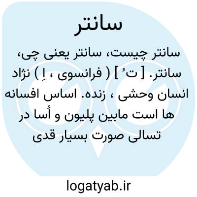 سانتر. [ ت ُ ] ( فرانسوی، اِ ) نژاد انسان وحشی، زنده. اساس افسانه ها است مابین پلیون و اُسا در تسالی صورت بسیار قدیمی از موجود افسانه ای مرد نیمه تنه ایست که سوار بر اسب نیمه تنه شده او با یک حالت جنگجویانه و خشونت آمیز میرود تا عیش و خوشی پیریتوس پادشاه لاپیت را درهم ریزد. سانترها بوسیله لاپیت ها از بین رفته اند. رجوع به لاروس و ایران باستان ص 1913 شود.معرب این کلمه قنطورس است. رجوع به همین لغت شود.