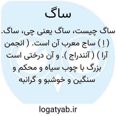 ساگ. ( اِ ) ساج معرب آن است. ( انجمن آرا ) ( آنندراج ). و آن درختی است بزرگ با چوب سیاه و محکم و سنگین و خوشبو و گرانبها، شبیه آبنوس و آن را در بناها و ساختن کشتی و اثاث خانه و تعبیه داروها بکار میبردند. رجوع به ساج شود.