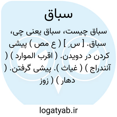 سباق. [ س َب ْ با ] ( ع ص ) سبقت گیرنده. ( اقرب الموارد ): هو سباق غایات؛ او فراهم آورنده نیزه های سبقت است یعنی بر دیگری سبقت گیرنده است. ( ناظم الاطباء ) ( منتهی الارب ). حائز قصبات السبق فی الفضائل و المناقب و المآثر. ( اقرب الموارد ).