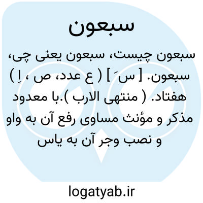 سبعون. [ س َ ] ( ع عدد، ص، اِ ) هفتاد. ( منتهی الارب ).با معدود مذکر و مؤنث مساوی رفع آن به واو و نصب وجر آن به یاست. ( از اقرب الموارد ): ثم فی سلسلة ذرعها سبعون ذراعاً فاسلکوه. ( قرآن 32/69 ).