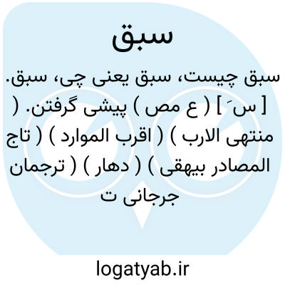 ۱ - ( مصدر ) پیش افتادن سبقت گرفتن. ۲ - ( اسم ) پیشی سبقت. یا سبق تصمیم. تصمیم قبلی با نقشه معین قبل از ارتکاب جرم. یا سبق ورمایه. عقدیست به منظور پیشی گرقتن و غلبه بر دیگری در اسب دوانی تیر اندازی شمشیر زنی و آلات جنگی دیگر در مقابل مبلغی معین که به برنده تعلق خواهد گرفت با شرایط آن که در کتابای فقه مندرج است.
