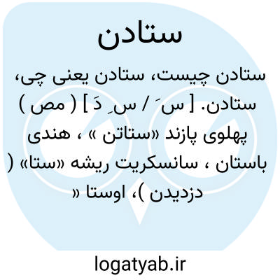 ستادن. [ س َ / س ِ دَ ] ( مص ) پهلوی پازند «ستاتن »، هندی باستان، سانسکریت ریشه «ستا» ( دزدیدن )، اوستا «تایو» ( دزد ). هوبشمان شکل مصدری اصلی را «سیتادن » دانسته = «ستدن » فارسی «ستادن »، در پهلوی «ستاتن »، ارمنی «ستان - ام » ( دریافت کنم ). ( حاشیه برهان قاطع چ معین ). ایستادن. ( برهان ) ( آنندراج ):