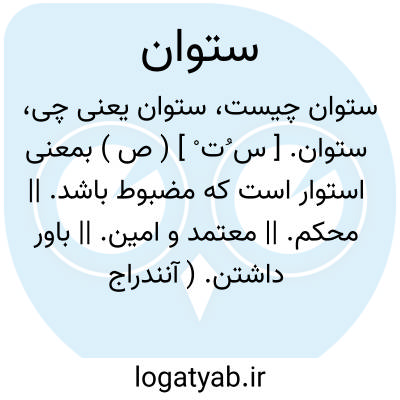 ستوان. [ س ُت ْ ] ( ص ) بمعنی استوار است که مضبوط باشد. || محکم. || معتمد و امین. || باور داشتن. ( آنندراج ) ( برهان ).