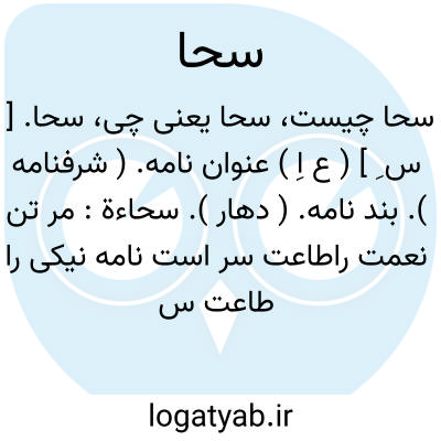 سحا. [ س ِ ] ( ع اِ ) عنوان نامه. ( شرفنامه ). بند نامه. ( دهار ). سحاءة:
