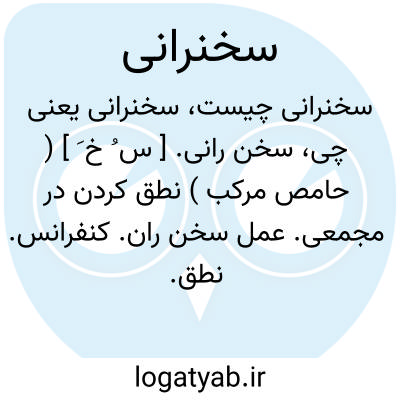 ( ~. ) ۱ - (حامص. ) نطق کردن، خطبه خواندن. ۲ - (اِمر. ) جایی که در آن گروهی برای شنیدن سخنان سخنران حاضر می شوند.